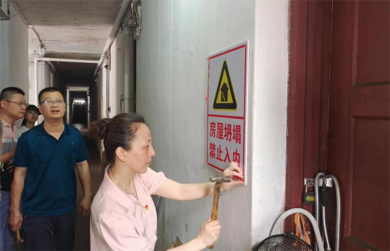 炎炎夏日,在支部书记、公司总经理陈丽雪的带领下,大家冒着酷暑,对星光社区50年以上老旧房屋等重点房屋开展专项整治,逐户逐栋排查,查看老旧房屋安全隐患、了解房屋居住人数、安全措施等情况。同时,组织全体党员干部在老旧房屋上张贴安全警示牌、告知牌、拉警示带等,并明确告知用户各楼栋管理人员及安全员的联系电话等。党员们分工协作,汗流浃背,确保社区每一处老旧房屋安全能够得到保障。