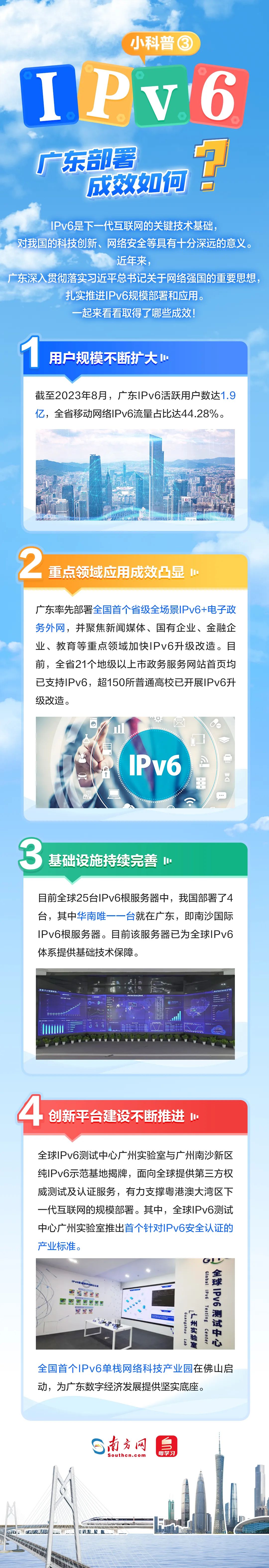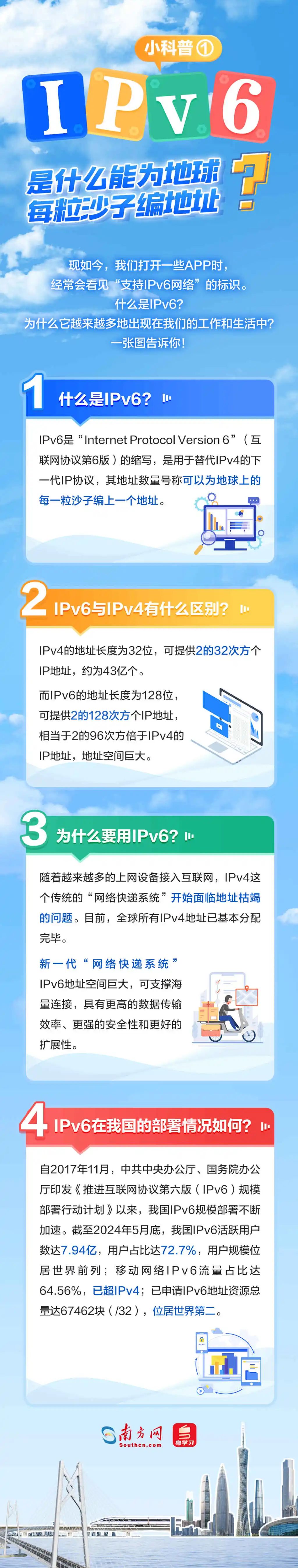 什么是IPv6?它对我们来说有哪些好处?广东IPv6部署取得了哪些成效,为哪些行业带来了改变?部署IPv6又有哪些关键步骤?5张图带你看懂这个能为地球每粒沙子编地址的神奇技术!