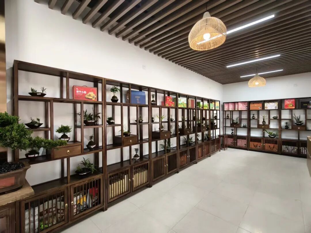 门店内,产品精良且种类丰富。微景观盆栽、山茶油、茶叶、银耳、栗子、葛根茶等数十款绿发集团自产及兄弟单位的优质农特产品,整齐陈列于货架上。